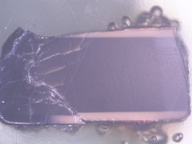 對失效電容進(jìn)行X射線檢查,在電容右側(cè)發(fā)現(xiàn)裂紋。