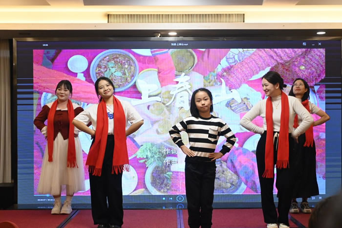 采購部:謝妮,肖美麗,財務(wù)部:曾獻情,林婷帶來的舞蹈《上春山》